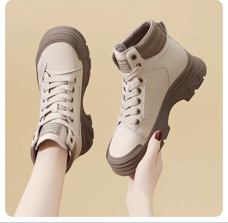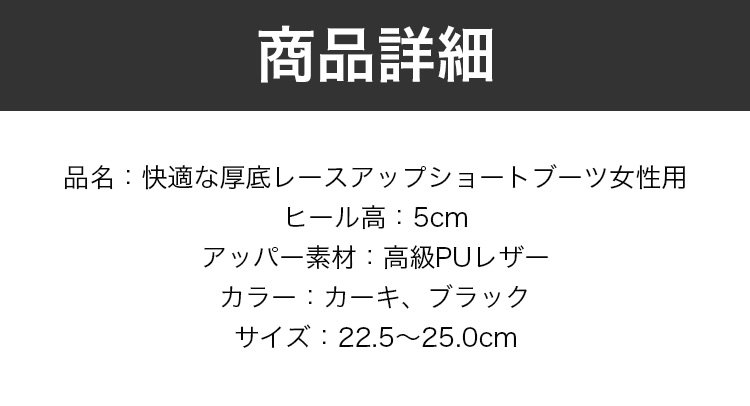 快適な厚底レースアップショートブーツ女性用