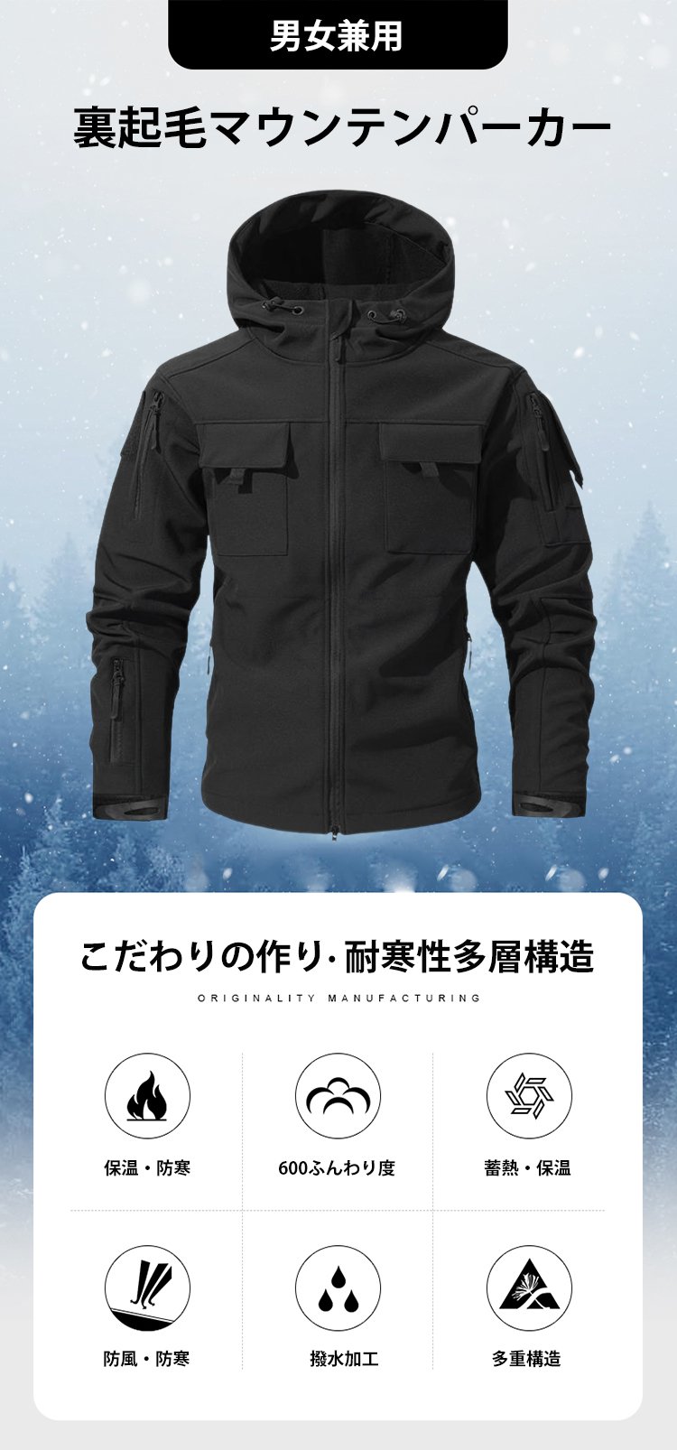 多ポケット裏起毛マウンテンパーカー