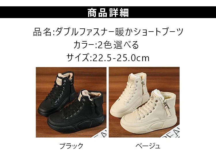 ダブルファスナー 暖か ショートブーツ